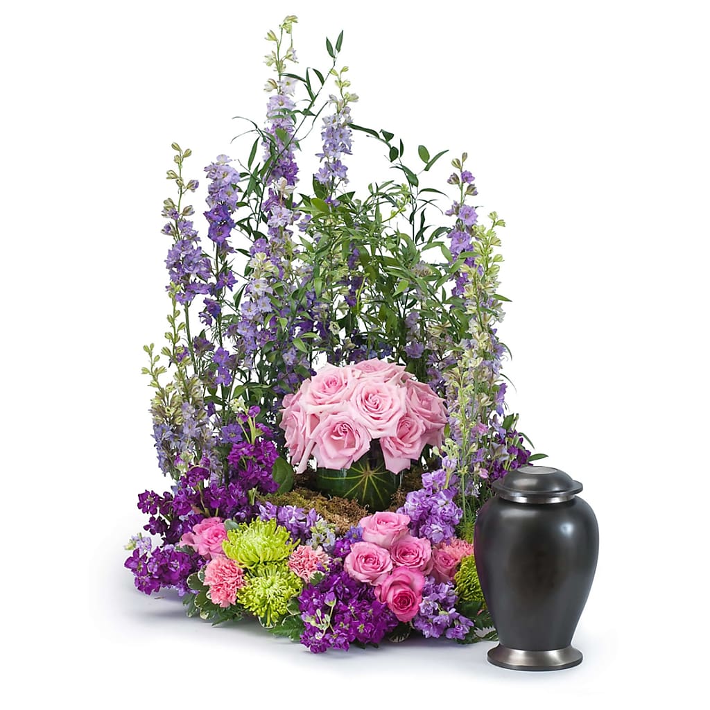 This tribute combines a beautiful combination of pink and purple flowers that will show that your loved one will be forever cherished.